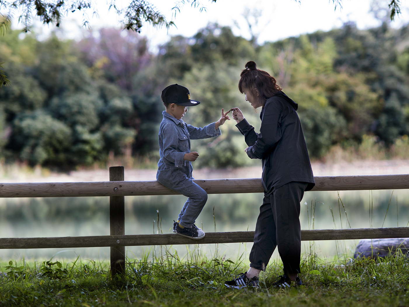 近くの公園で、よく撮影する場所です。後ろの池や森の色が四季折々に変化し、ロケならではの写真が撮れます。ただ、大抵が逆光撮影になるため露出が難しいです。自然光のみで、ポーズは演出せず85ミリでシャッターチャンスを狙いました。