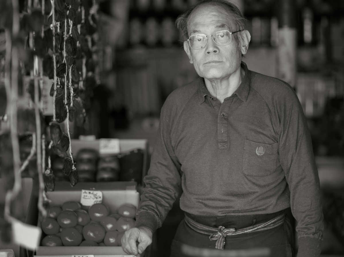 タイトルにもありますが商店街の八百屋の店主さんです。ご本人らしい1枚をと店先での撮影をリクエスト致しました。撮影した瞬間の時間の切り取りではなく、長年営んでこられたご商売の感じがでるのではないかとモノトーンにさせて頂きました。