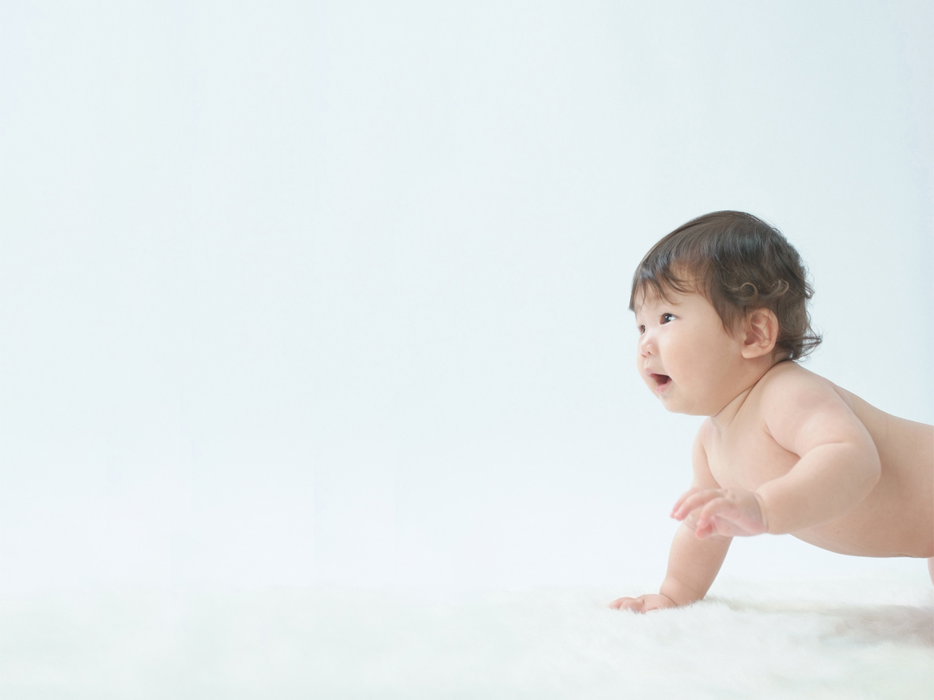 ハイハイができるようになったばかりで、まだ少し思うように進めないけれど、パパとママが呼ぶ方を一心に見つめ、手を前に前に出して一生懸命進もうとする気迫や、赤ちゃんの目線の先で呼んでいるパパママの存在を表現したくて撮った1枚です。