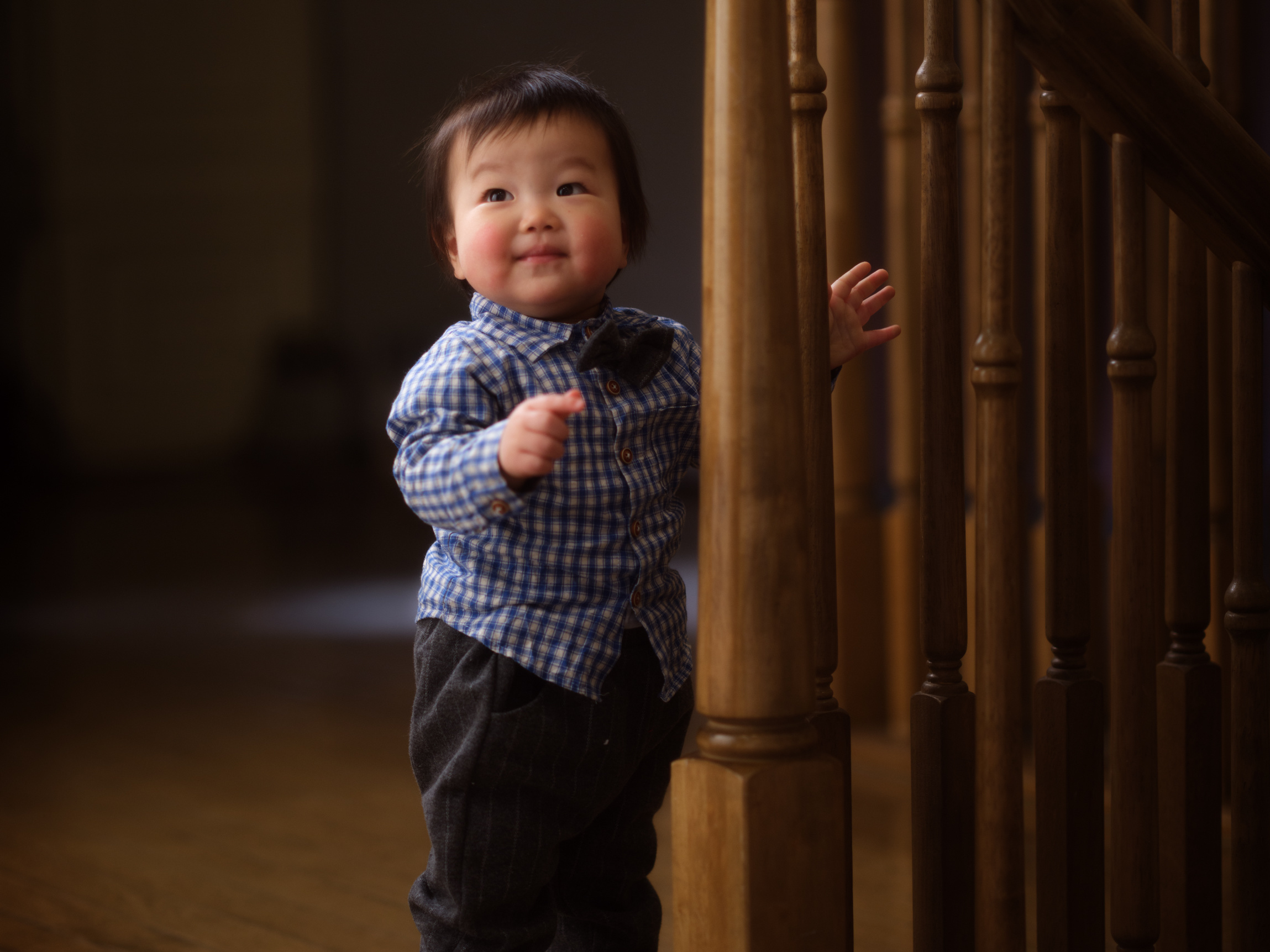 格子の色味に合わせてローキー調に撮影しました。つかまり立ちが精一杯の可愛さを捉えることに注力しました。隙間から見える手が気に入っております。