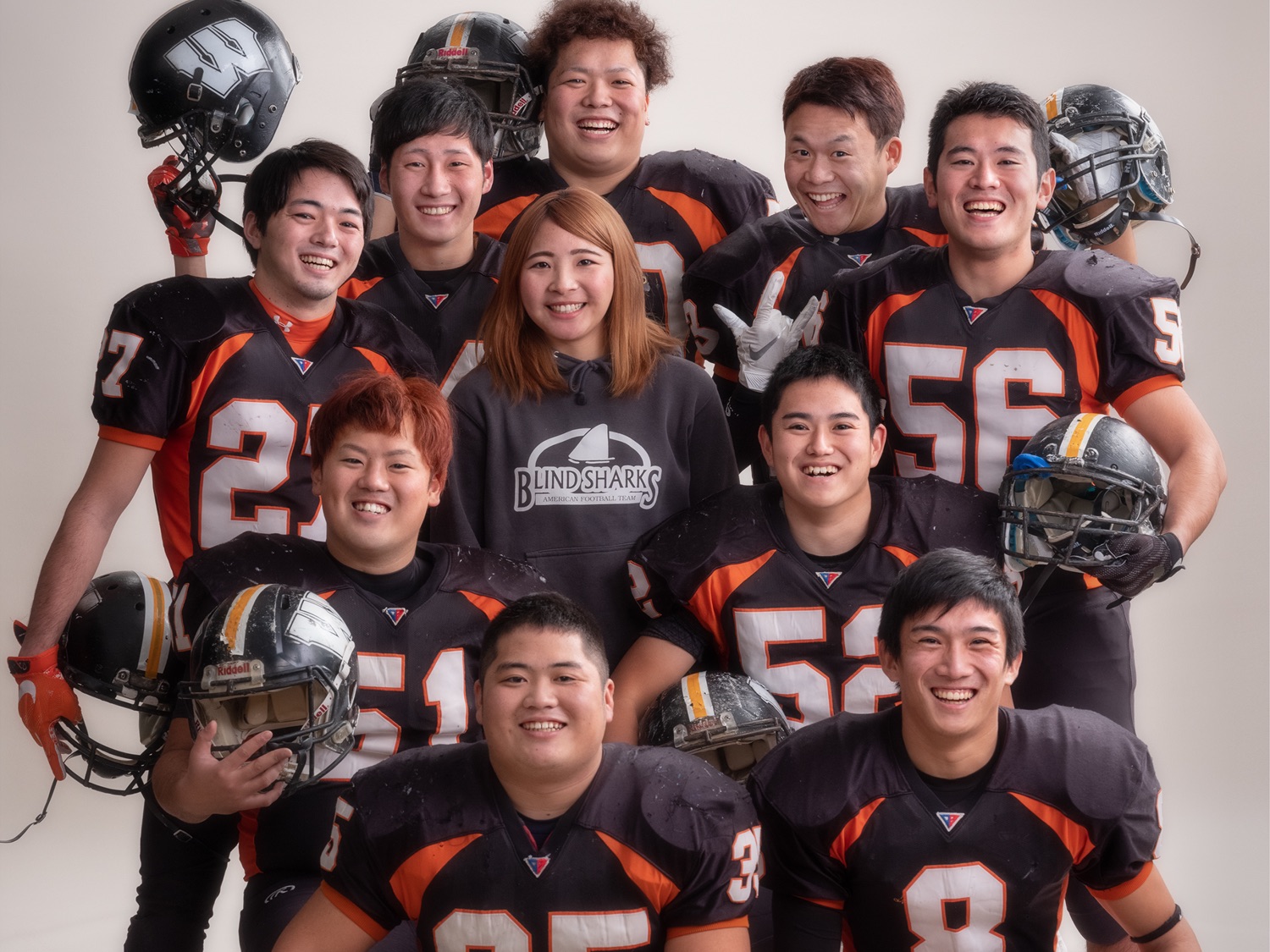 大学のアメフト部の卒業記念写真で撮影した一カットです。各自の体型や仕草をよく観察して、大きな人は後ろに配置し構図を作り、最高の仲間が溢れ出てくるようなイメージで表現しました。
