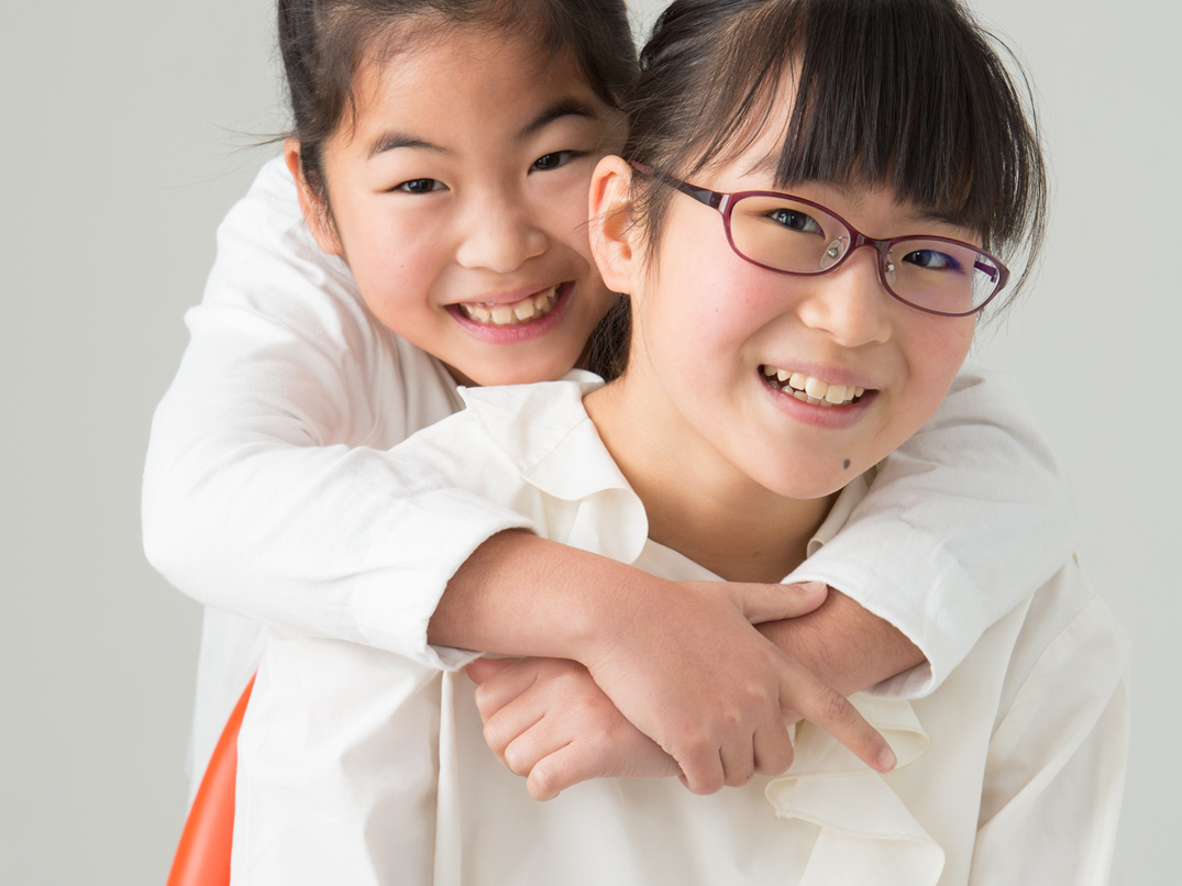 とても仲の良いご家族で、姉妹の写真も自然といい笑顔に撮れました。白い空間の中にオレンジが少し見えるといいなぁと思い、選んだイスです。お姉ちゃんが上手に座ってくれました。妹さんのハグの仕方とお顔の出し方もいい感じです。
